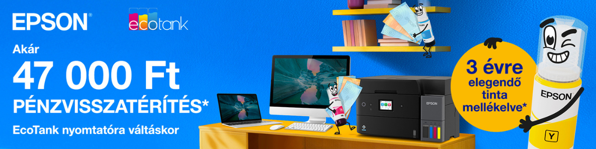 Regisztráld a készüléked 2026. március 31-ig az Epson honlapján is a garantált pénzvisszatérítésért! (27 500 Ft – 47 000 Ft a vásárolt készüléktől függően)